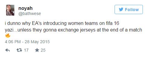 – Skjønner ikke hvorfor EA introduserer kvinnelag i «FIFA 16» … med mindre de kommer til å bytte trøyer etter en kamp.