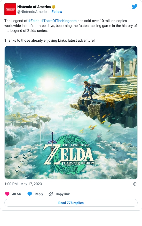 «Tears of the Kingdom» solgte ti millioner på tre dager