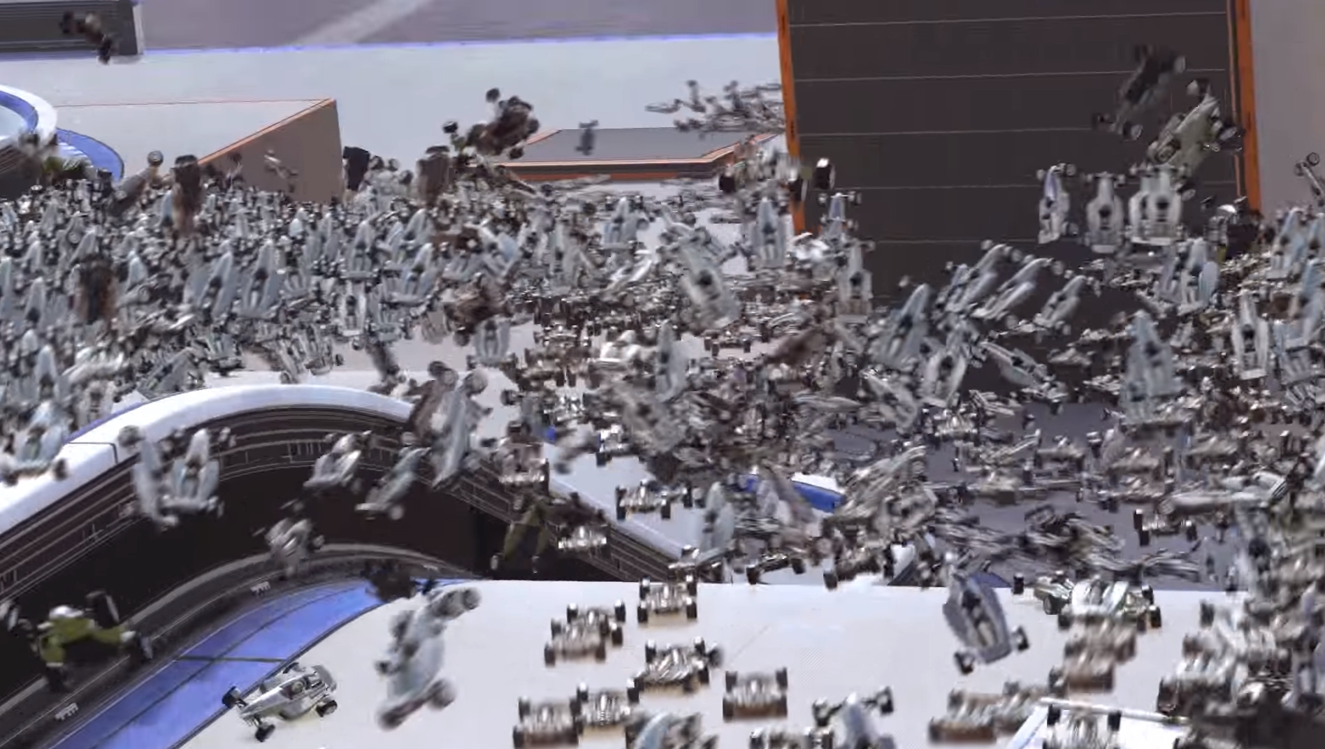 Denne gangen har YouTube-brukeren L4Bomb4 tatt litt i, og ikke mindre enn 20 000 (!) blankpolerte Formel 1-biler suser avgårde.