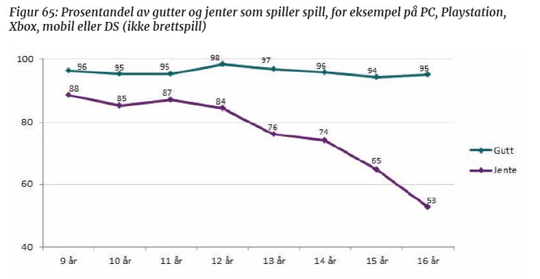 Om dette betyr at jentene mister interessen, eller om det bare betyr at det er en større tilstrømming hos de yngste (og at disse vil fortsette å spille når de blir eldre) kommer ikke fram av rapporten.
