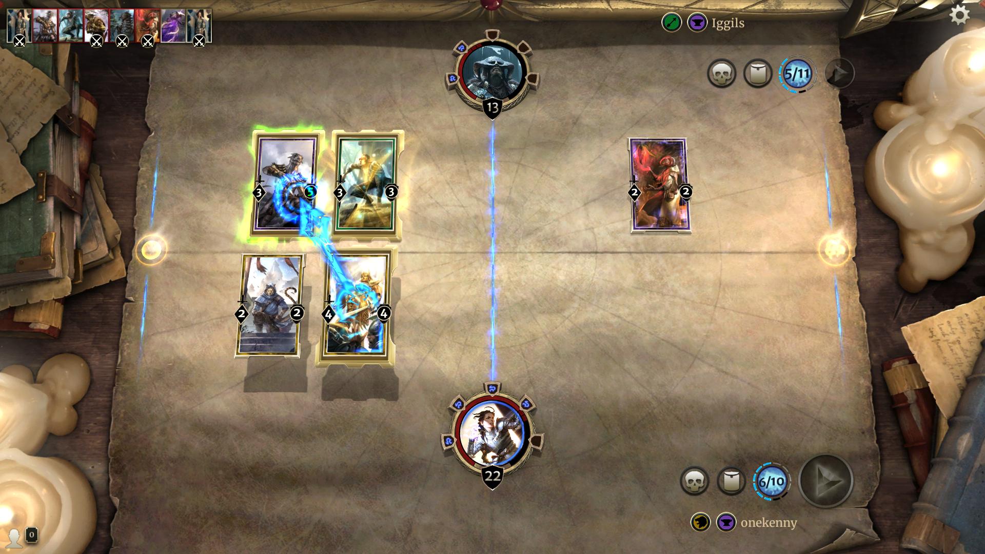 Begge spillere har her hver sin helt med 30 helsepoeng, og en kortstokk på mellom 50 og 70 kort. Hver runde trekker spillerne et kort, og plasserer kort fra samlingen sin på spillbrettet. Disse kortene kan da sloss innbyrdes eller brukes til å skade motstanderen, og når hun eller han er tom for helse vinner vi. Et enkelt konsept, som kan være utrolig vanskelig å mestre.