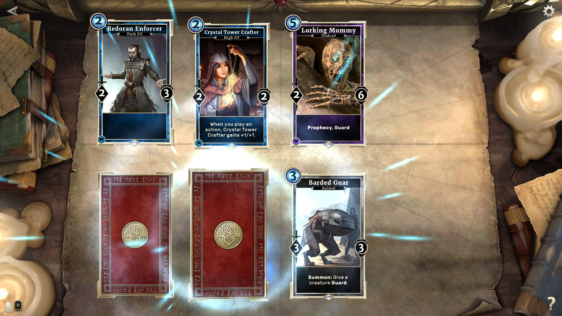 I tillegg har noen kort såkalt prophecy, som betyr at vi kan spille de med en gang om vi trekker de på grunn av en rune som aktiveres – selv om det er motstanderens tur. Å trekke en guard eller en god heal når motstanderen hamrer på oss kan fort snu kampen i vår favør.
