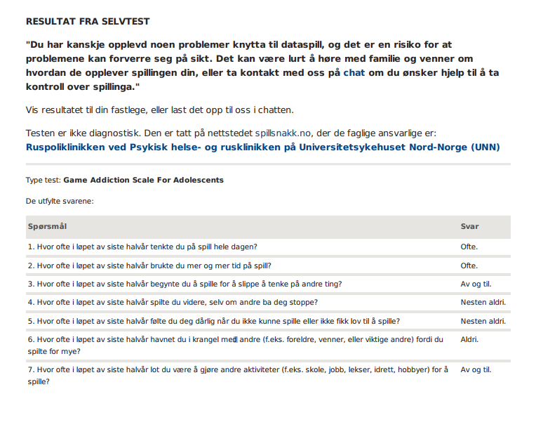 For å finne ut om du er i faregruppen har Universitetssykehuset i Nord-Norge lagt ut en enkelt test på nettstedet Spillsnakk.no.
