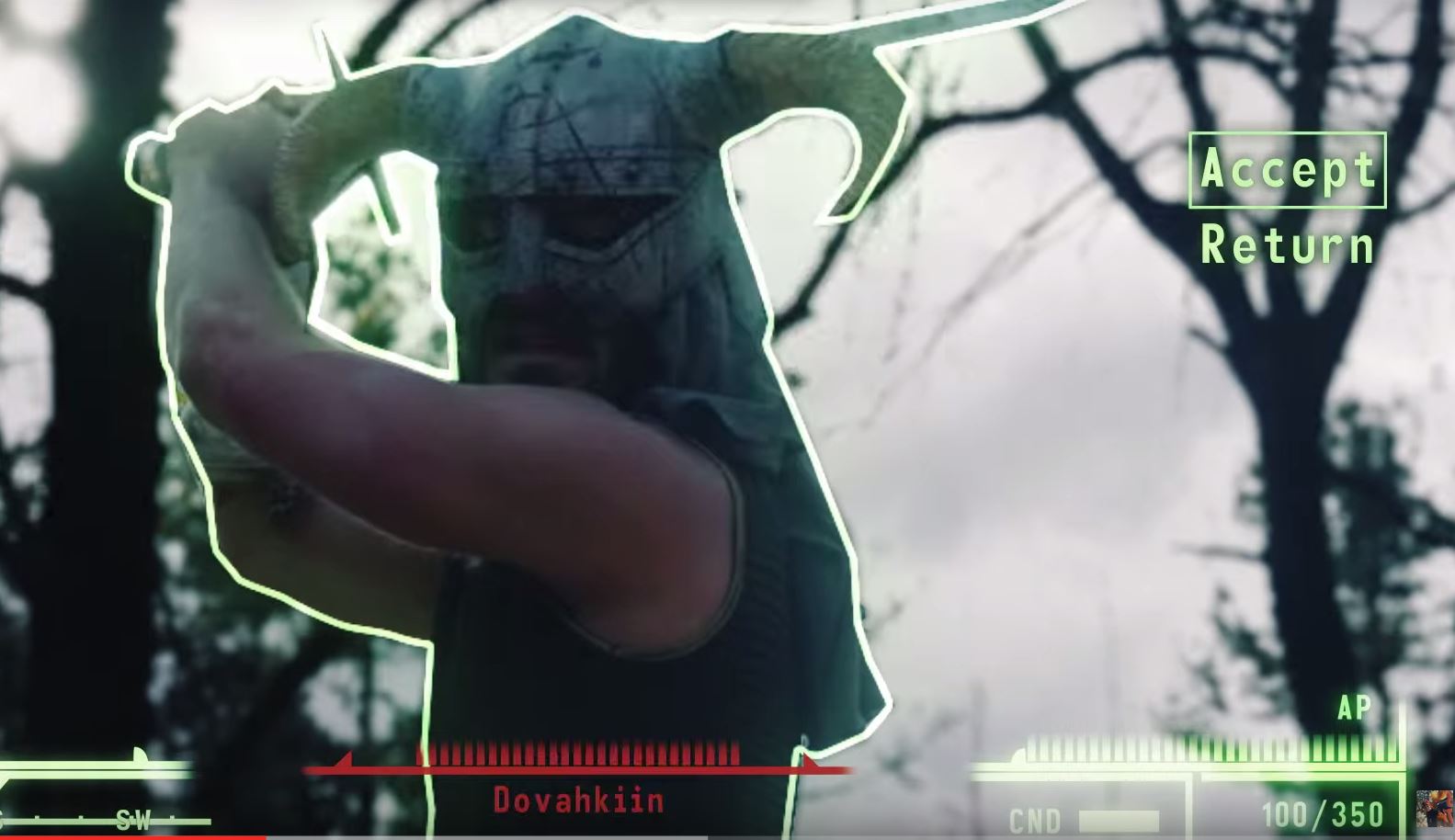 Hva ville ha skjedd hvis den ensomme vandreren fra «Fallout 3» fikk tekniske problemer med Pip-Boyen sin på sin glade vei til Megaton, og i stedet endte opp ansikt til ansikt med The Dragonborn i «Skyrim»? Vel, noe sånt som dette.