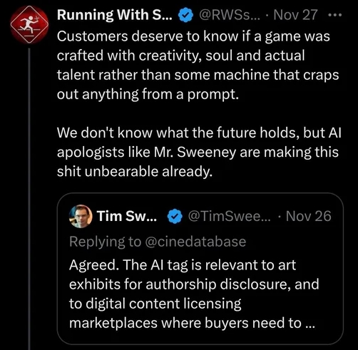 Flausefaktoren er spesielt høy, ettersom studioet bare dager i forveien hadde gått hardt ut mot nettopp AI-bruk i spillutvikling.