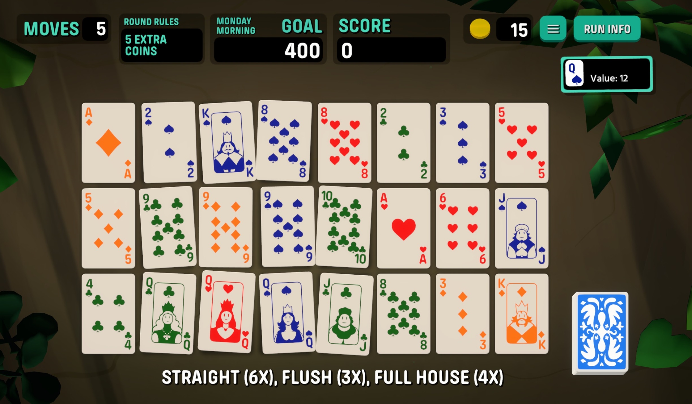 På et rutenett skal det, med begrenset antall trekk, snekres sammen kombinasjoner med pokerhender som deretter cashes inn i poeng avhengig av hvordan de ligger på bordet.