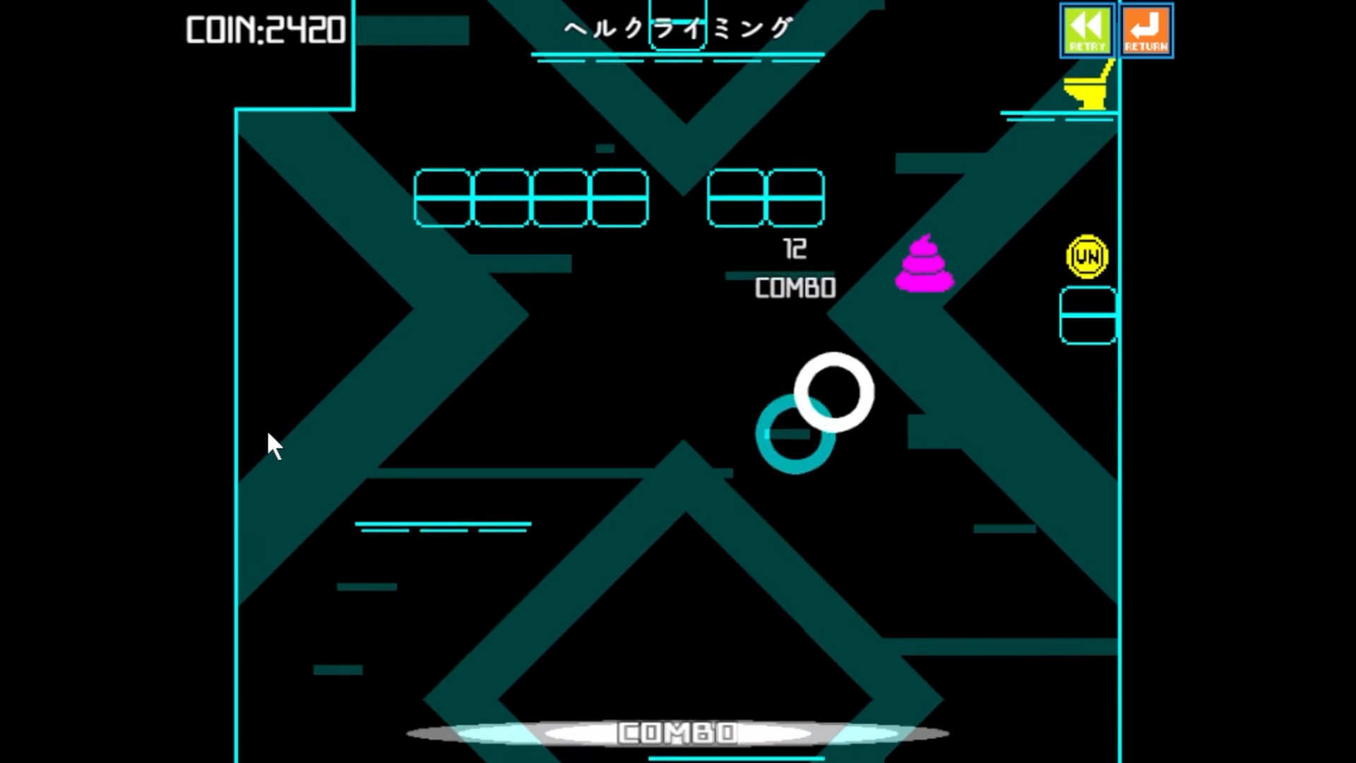 Bæsjen kan oppgraderes, for eksempel til å bli en curry-bæsj, og kan blinges ut med ting du kjøper for mynter den samler på banene.