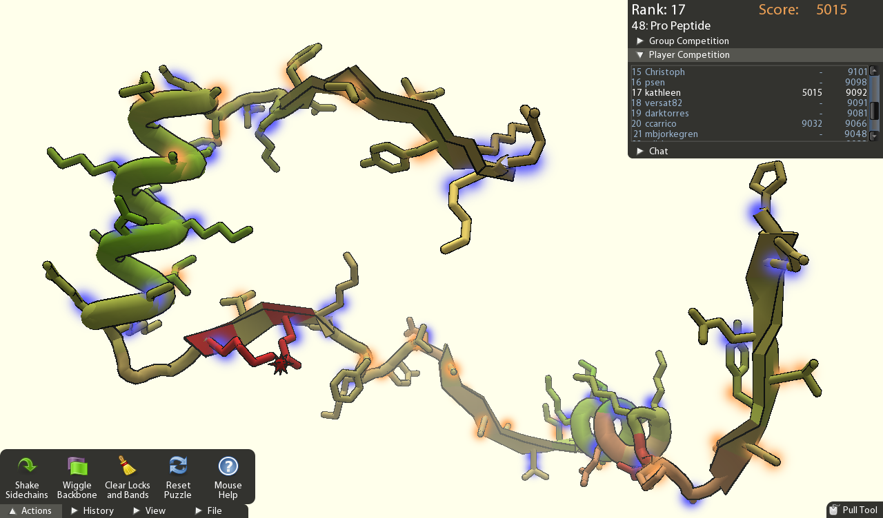 «Foldit» er et spillprosjekt som lar spillere bryne seg på å bygge proteiner i en virtuell lekestue. Protein-feil står for en rekke sykdommer, som Alzheimers, Parkinsons og flere typer kreft.