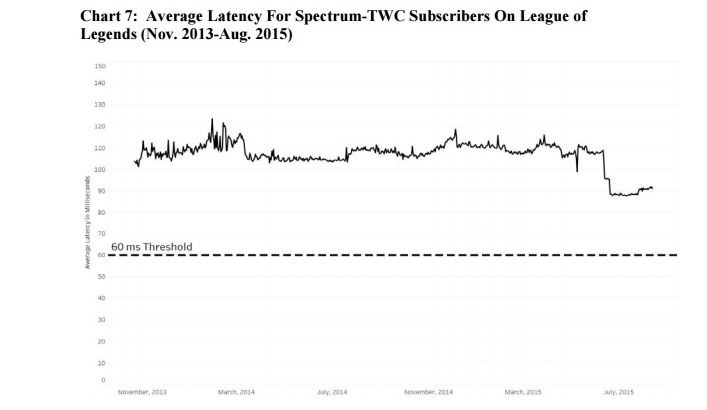 Ifølge Riot sine spesifikasjoner rundt «League of Legends» vil en linje som gir mindre enn 60 millisekunder forsinkelse være «god», men i snitt hadde TWC-kunder rundt 110 millisekunder med lag – nesten dobbelt så mye.
