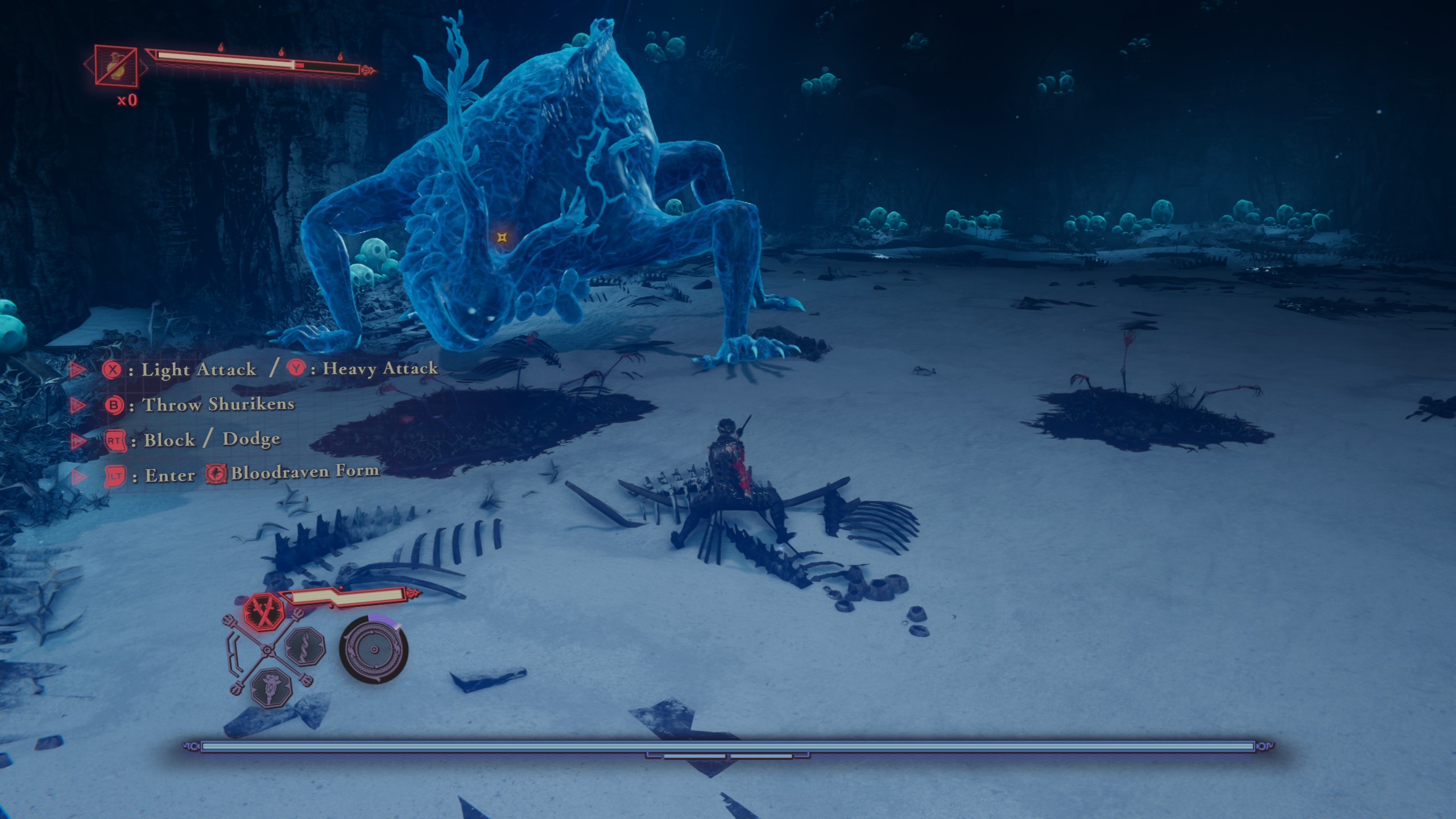 En genial twist på formelen er at du også har tilgang på et helt annet sett med ferdigheter via Yakumo sin «bloodraven form». Hold inne venstre trigger og du går inn i ravnemodus: Tenk på det som å holde nede SHIFT-knappen tastaturet.