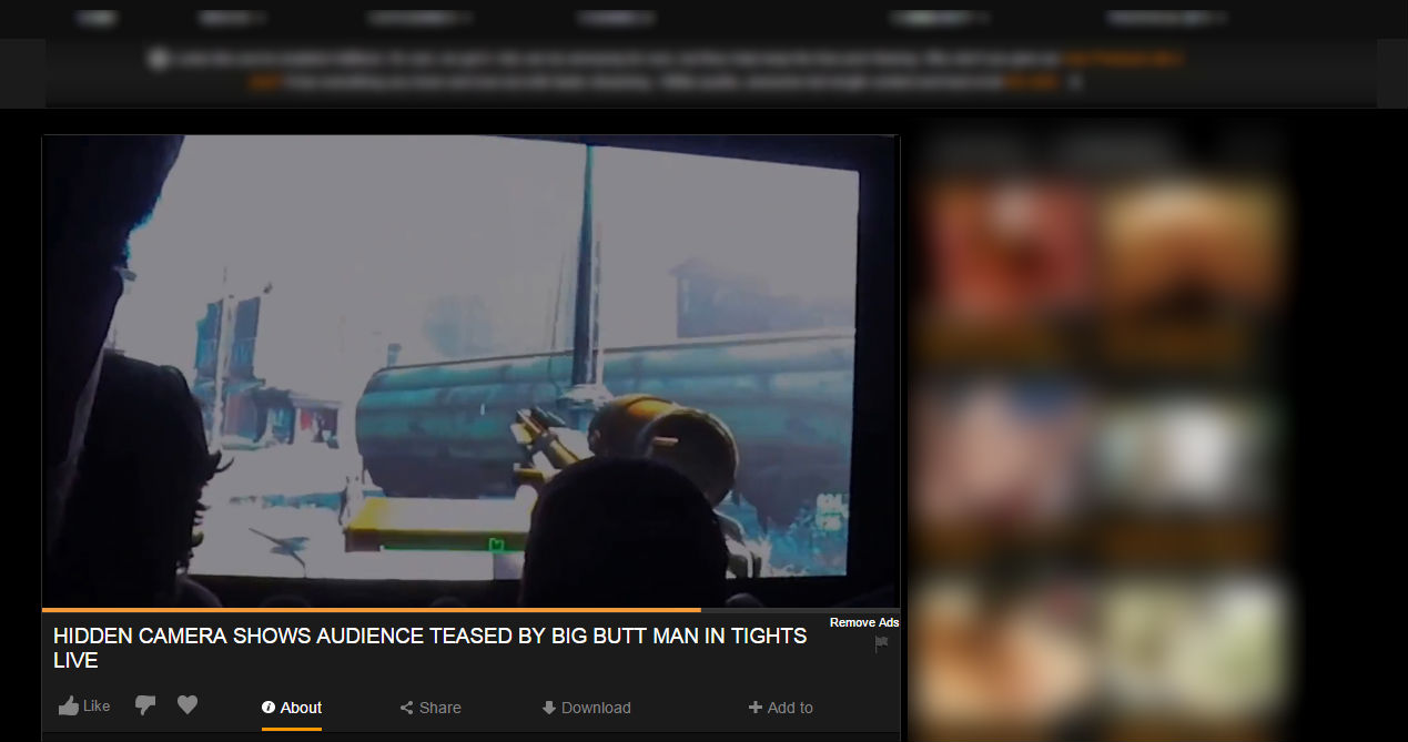 Tittelen viste «skjult kamera viser publikum som blir fristet av stor rompe-mann med tights live», men innholdet er syv minutter fra storspillet «Fallout 4».