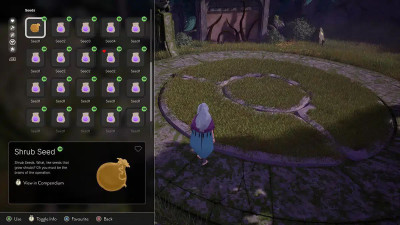 Her finner man kategorier som «Figments», «Seeds» og «Plants», noe som jo kan tyde på at spillet skulle inneholde en form for gårdsdrift eller basebygging.