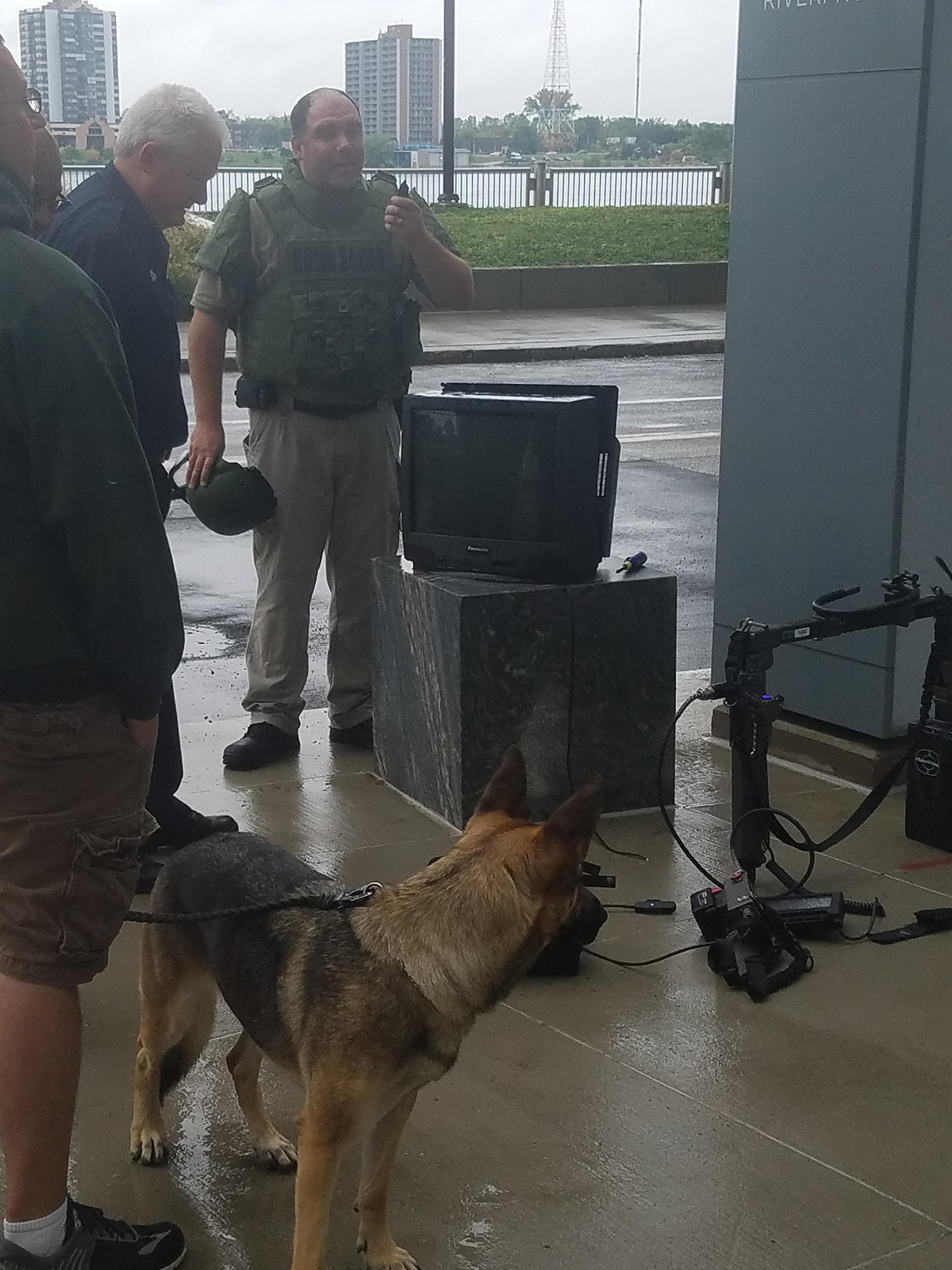 - Jeg vet ikke om det er grunnen til at sikkerheten er litt større, men noen satte igjen tv-en rett utenfor hallen, så noen ringte bombegruppa, som igjen sprengte den.