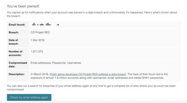 Det kommer frem i en mail utsendt av vaktbikkjenettstedet haveibeenpwned.com, som samler alle lekkasjer i det de blir lagt ute, slik at du kan søke opp deg selv og se om du er berørt.