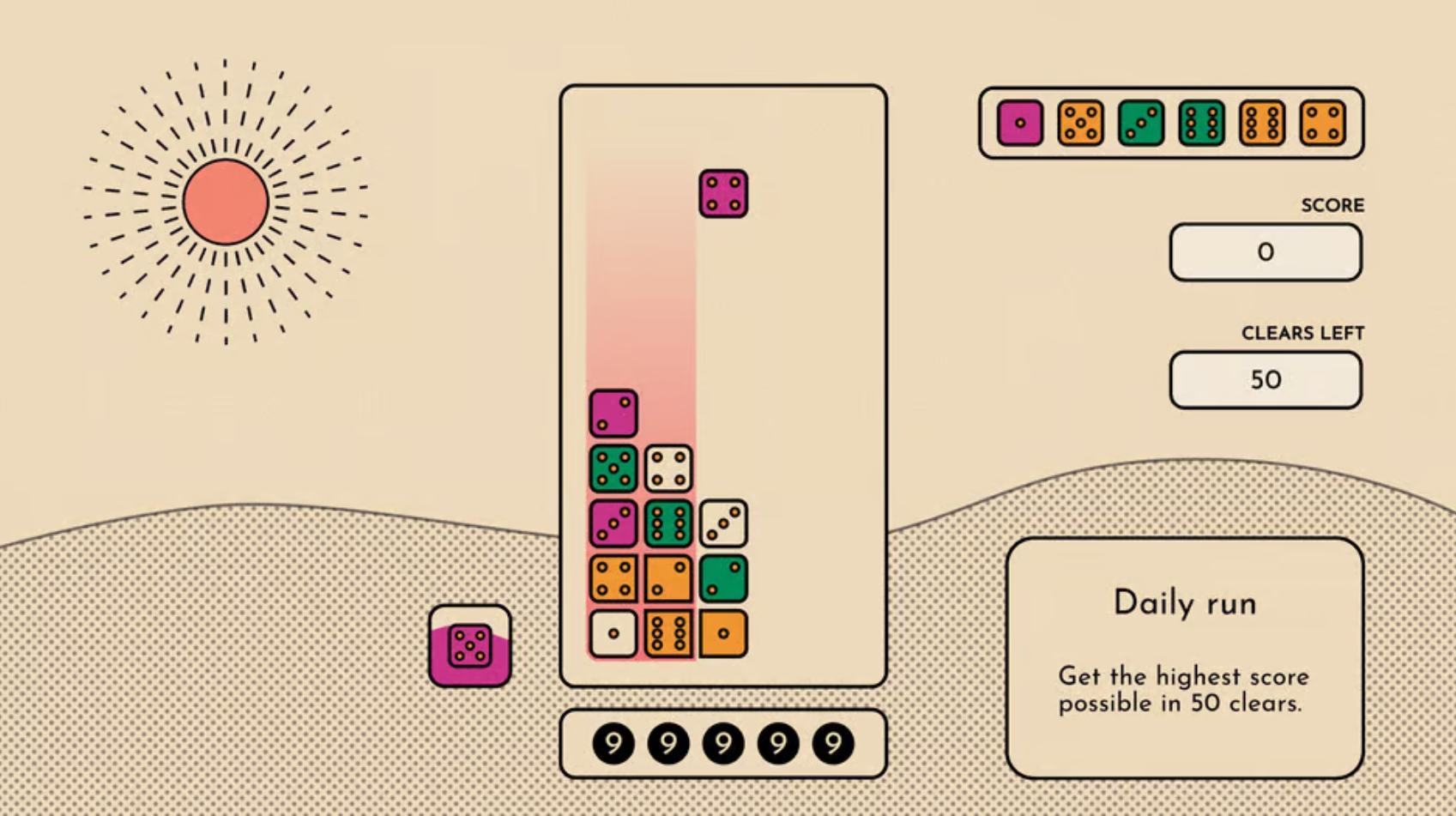Et puslespill fra Leik Games som blander strategi og matching. Spilleren må stable fargede terninger i kolonner for å treffe en bestemt sum.