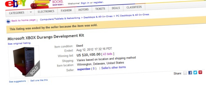En «Xbox 720» kan til og med å ha blitt solgt i en nettauksjon tidligere i år. Selgeren fikk 20 000 dollar for det han påstår er en Durango-prototyp, kallenavnet på «Xbox 720».