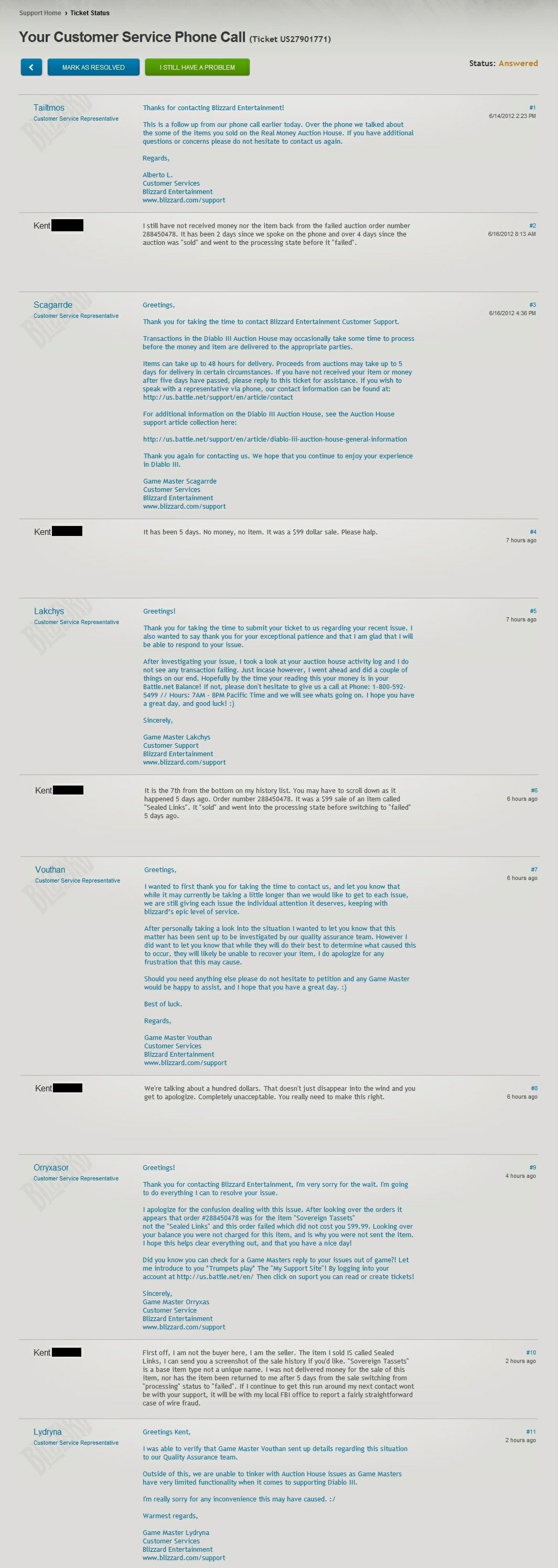 Men pengene kom aldri, og Kent sendte inn en forespørsel via Blizzards kundeservicesystem.
