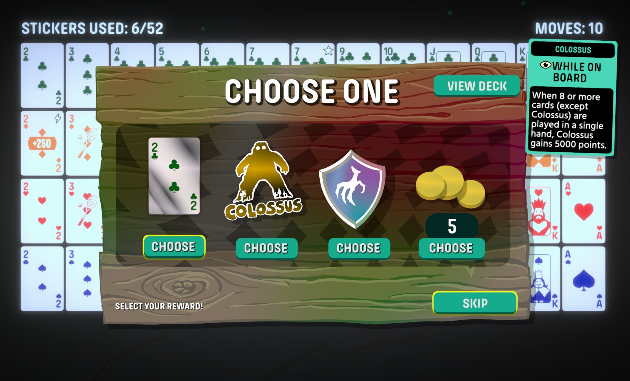 Klistremerkene kan gi mer poeng, gjøre sånn at kortene (og dermed komboene) trigges mange ganger, eller gi helt nye egenskaper som endrer helt hvordan et «run» går.