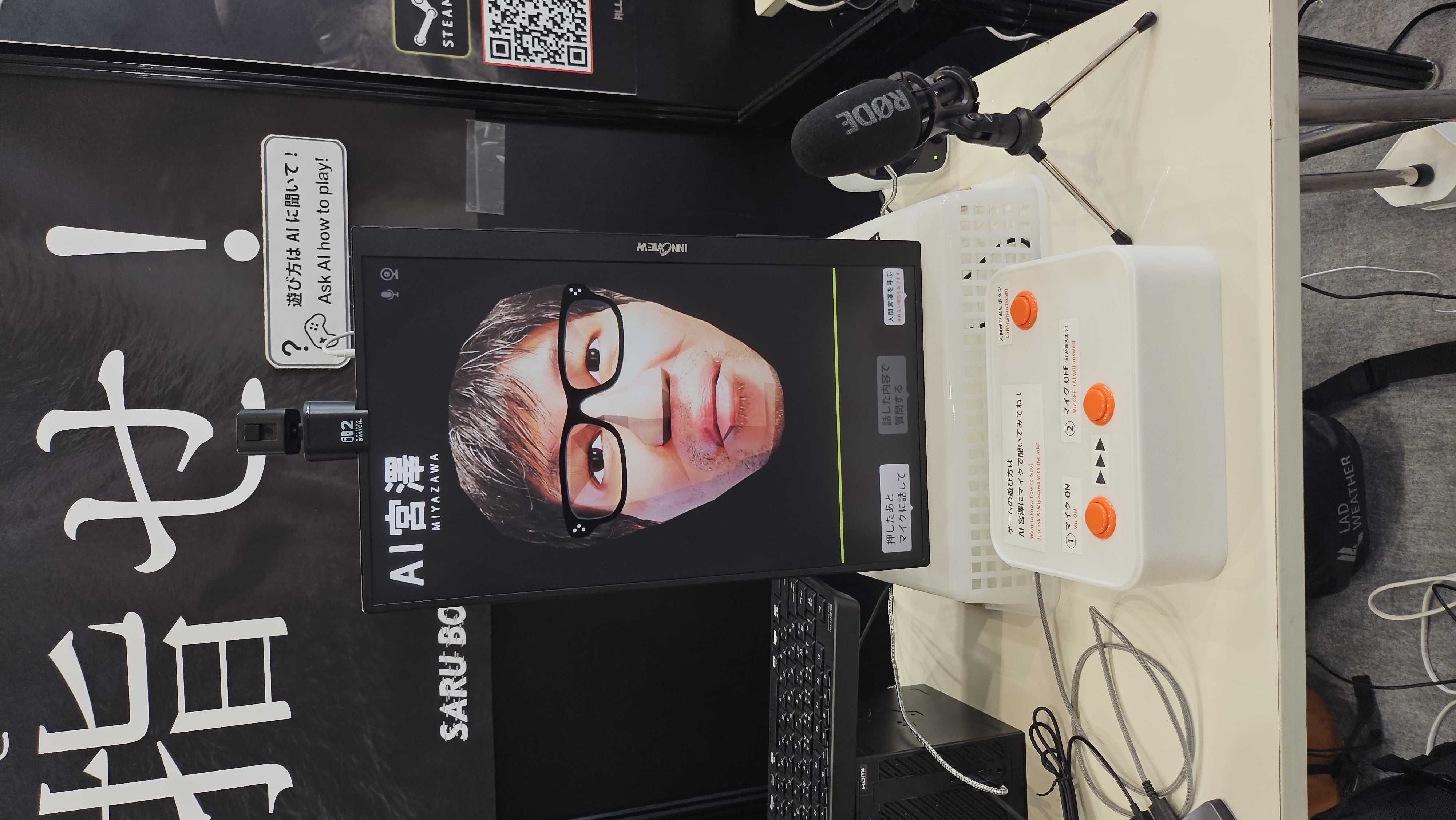 Utvikleren var derimot ikke der, men hadde satt fram en AI-versjon av seg selv til de som hadde spørsmål. Jeg spurte hva han røykte da han fant på spillet, og da lo AI-en og sa at han slett ikke røykte – dette var et eksperiment for å finne ut hvordan bananer kunne brukes mer i spill.