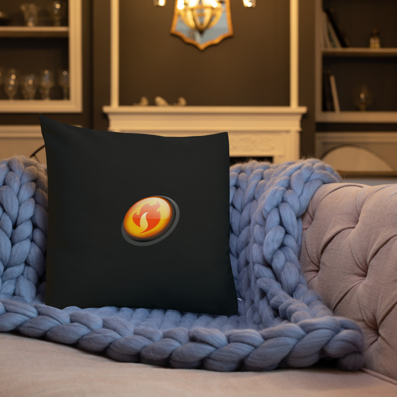 Vi har til og med en pute med den aller første logoen vår – og knappen som var interaktiv på baksiden!