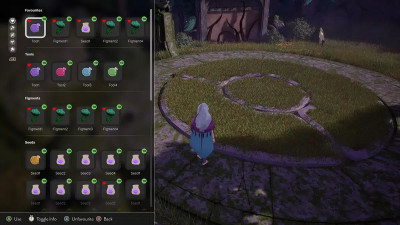 Her finner man kategorier som «Figments», «Seeds» og «Plants», noe som jo kan tyde på at spillet skulle inneholde en form for gårdsdrift eller basebygging.