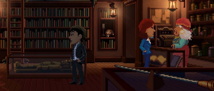 «Timbleweed Park» derimot, går heeeelt tilbake til skaftet av røttene. Ved første øyekast kunne dette lett vært et nytt Scumm-spill, med klassisk verb-layout, deilig pikselgrafikk og et lydspor som ikke hadde vært umulig å høre i et LucasArts-spill.